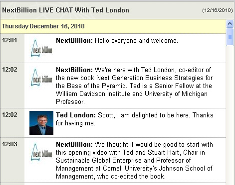 Ted London participated in a live chat with NextBillion.net